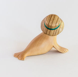 So far I've carved two of these seals with bucket hats. Shown here is one from walnut with a NZ kauri bucket hat, and one from basswood with a catalpa bucket hat.